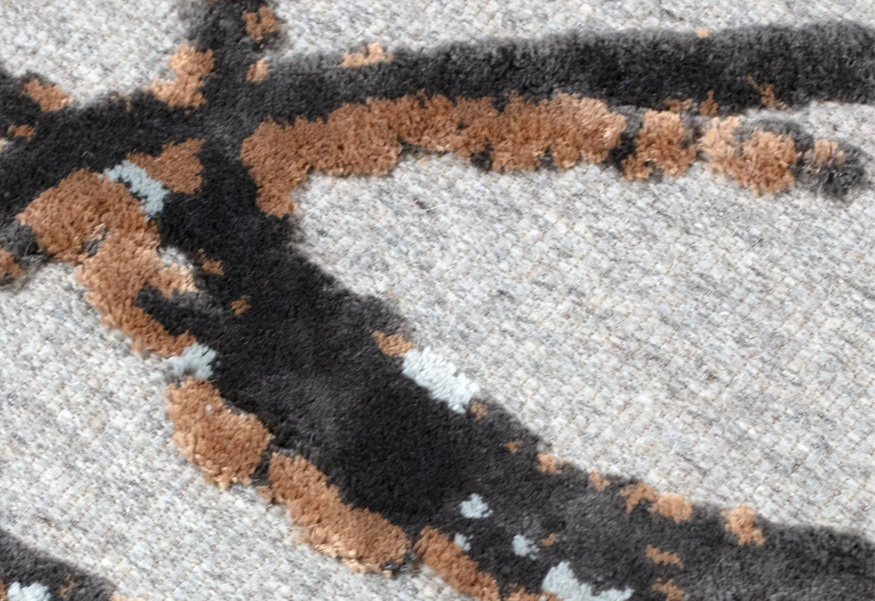 Der Teppich besteht aus 95 % Wolle und 5 % Polyamid für Stärke und Stabilität und ist mit einem Flor aus 100 % Bambusseidenviskose versehen. Diese Kombination verbessert die Haltbarkeit und sorgt gleichzeitig für einen weichen, seidenähnlichen Griff und subtilen Glanz. Die Struktur ist mit einer rutschfesten Rückseite verstärkt, wiegt ca. 4,8 kg und wird unter OEKO-TEX® STANDARD 100 Zertifizierung hergestellt. Er wird in Europa gewebt und ist für die professionelle Reinigung geeignet. Er ist für den langfristigen Gebrauch konzipiert, ohne Kompromisse bei der Materialqualität einzugehen.