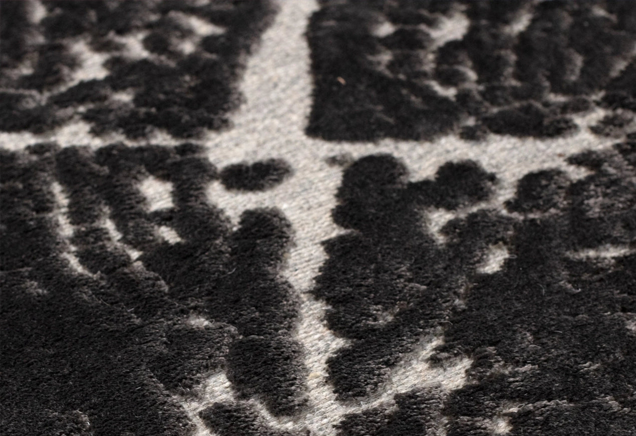 Gefertigt aus einer sorgfältig ausbalancierten Materialzusammensetzung, besteht der Teppich aus einer strapazierfähigen Basis von 95% Wolle und 5% Polyamid, kombiniert mit einem Flor aus 100% Bambusseidenviskose. Die Oberfläche aus Bambusseide bietet eine weiche, seidenähnliche Haptik bei gleichzeitiger Stärke und Widerstandsfähigkeit für den täglichen Gebrauch.