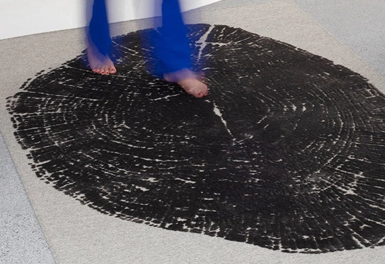 “Sycamore” by Josh Krute reinterprets the organic structure of a tree into a tactile, architectural surface. Inspired by the cross-section of a sycamore, this wool and bamboo silk rug combines natural materials with precise craftsmanship. With a density of 820,000 points per m² and a soft bamboo silk pile, it offers both visual clarity and a refined touch. Woven in Europe and finished with a non-slip backing, it is designed for both residential and contract interiors.