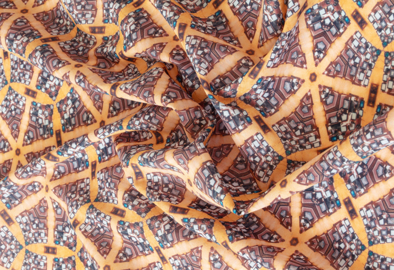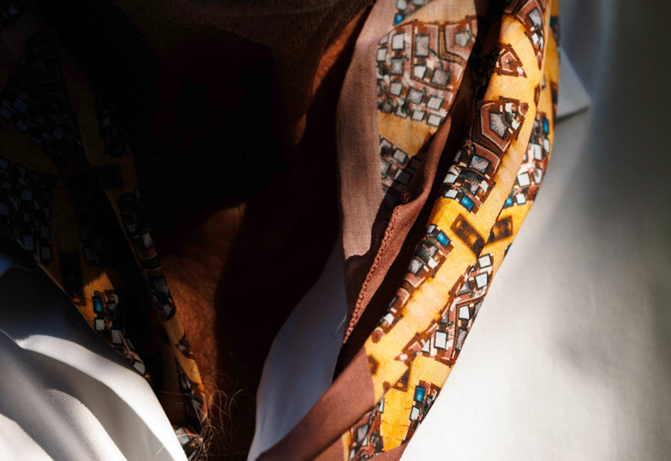 Dieses 65 × 65 cm große Bandana aus 100 % GOTS-zertifizierter Bio-Baumwolle (Global Organic Textile Standard) ist digital bedruckt, um komplexe architektonische Motive mit gestochen scharfer Präzision und leuchtenden Farben wiederzugeben. Das quadratische Tuch fällt weich und dennoch strukturiert – es ist atmungsaktiv, leicht und vielseitig einsetzbar für Hals, Haare, Handgelenk oder Tasche. Es ist einzeln nummeriert und in streng limitierter Auflage hergestellt und macht aus einem interkulturellen Symbol ein nachhaltig hergestelltes Sammlerstück, das Tradition, Design und moderne Handwerkskunst vereint.