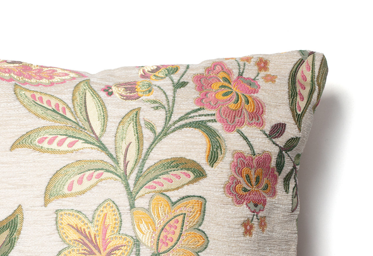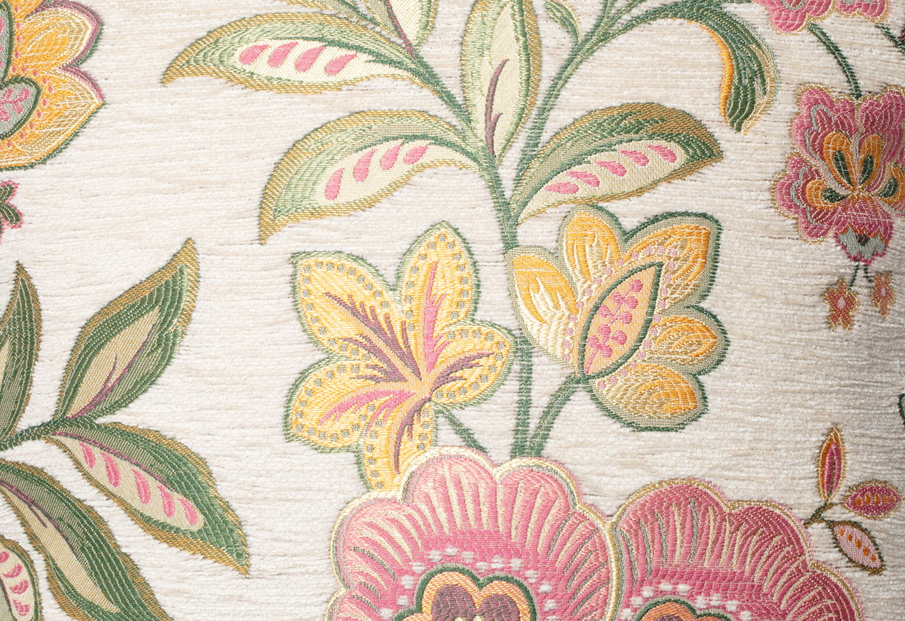Die komplexe Gobelin-Jacquard-Technik erweckt Botanicas florale Motive mit einer vielschichtigen Gewebestruktur zum Leben, die ornamentale Details und Klarheit harmonisch verbindet. Farbverläufe und taktile Kontraste rufen einen ruhigen, grünen Garten hervor und fördern stille Kontemplation sowie natürliche Harmonie in edlen Interieurs.