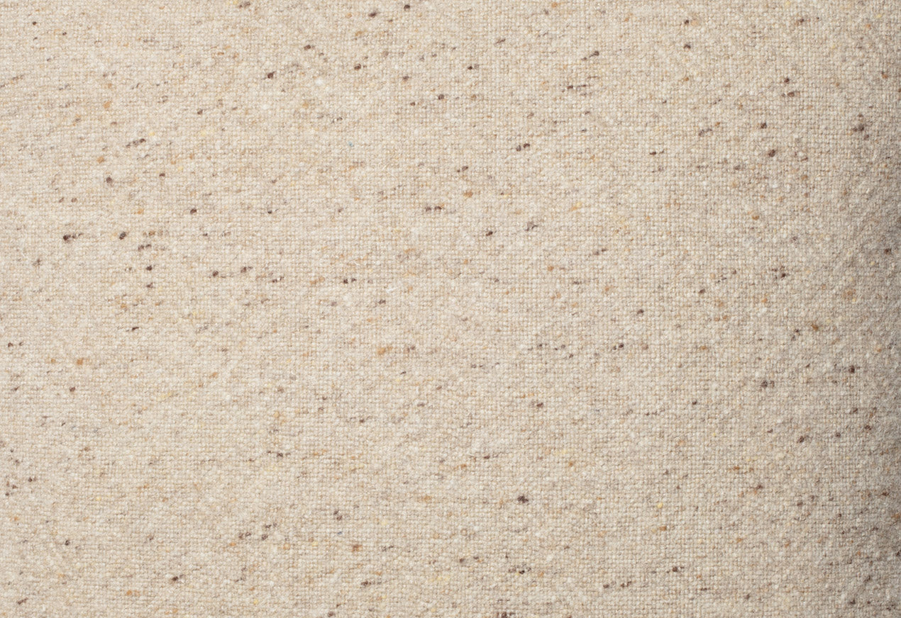Auf Jacquard-Webstühlen gefertigt, zeigt das Gewebe ein komplexes Zusammenspiel von Leinen- und Wollgarnen. Die Struktur bietet eine vielschichtige Oberfläche mit roher, dennoch feiner Textur, die Licht und Schatten einfängt und eine ruhige, geerdete Atmosphäre erzeugt.