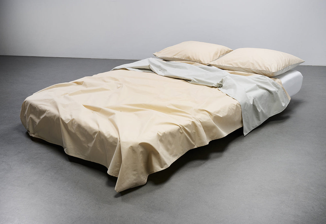Sommer-Manschettenlaken aus Perkal-Baumwolle – Sand / Hellgrau Sample