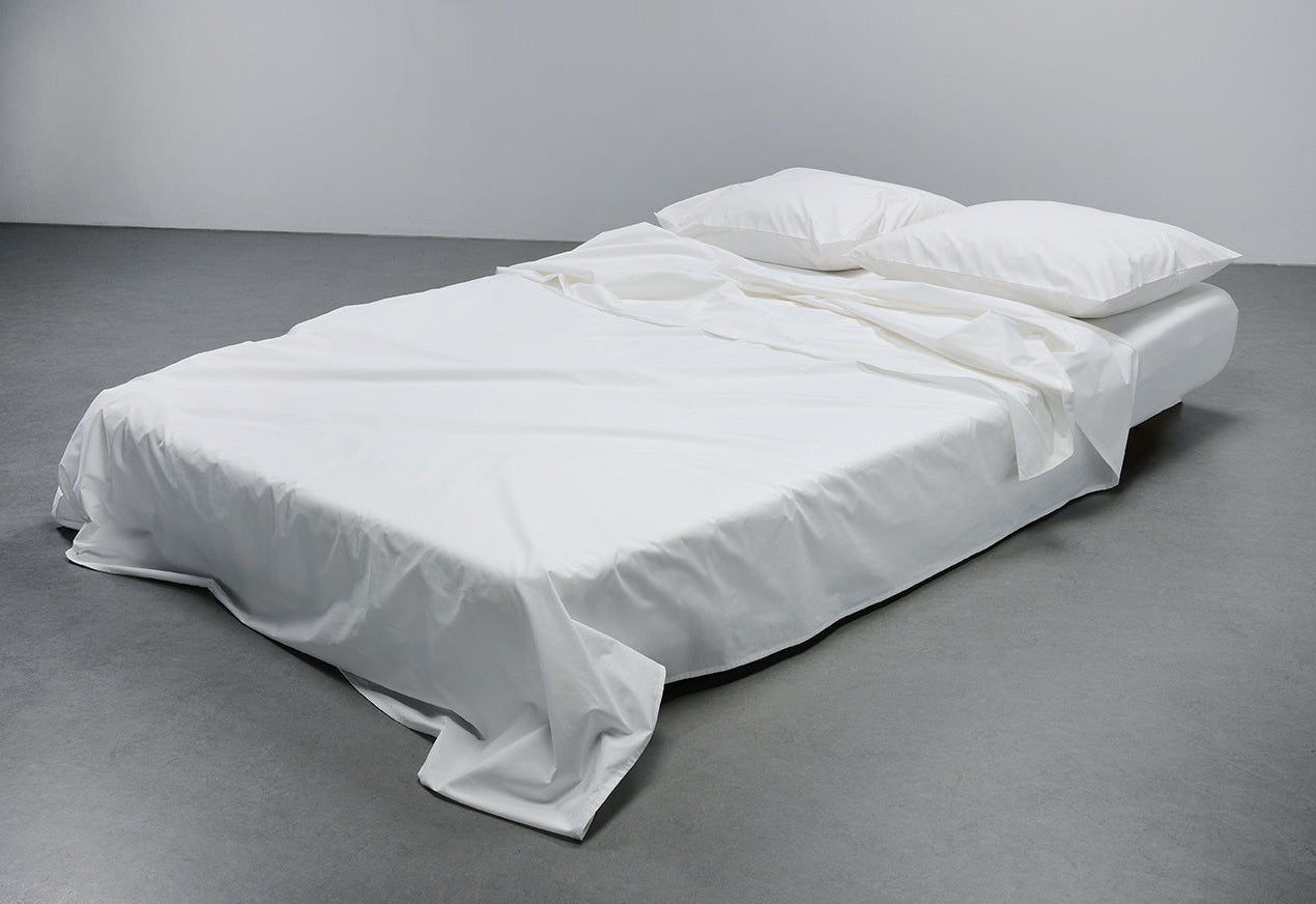 Unsere Perkalbettwäsche wird aus langstapeliger Pima-Baumwolle hergestellt, die in den USA angebaut und in Italien gewebt wird, um ein frisches und dennoch weiches Finish zu erzielen. Die Webart mit 300 Fäden bietet Atmungsaktivität, Festigkeit und dauerhafte Klarheit in Farbe und Form. Jedes Set, das in Italien stückgefärbt und mit hochwertigen YKK-Reißverschlüssen versehen wird, wird in unserem Atelier von Hand zugeschnitten, genäht und fertiggestellt. Maßgeschneidert auf Bestellung, ist dies ein präzisionsgefertigter Perkal, der durch Schlichtheit und Sorgfalt besticht.