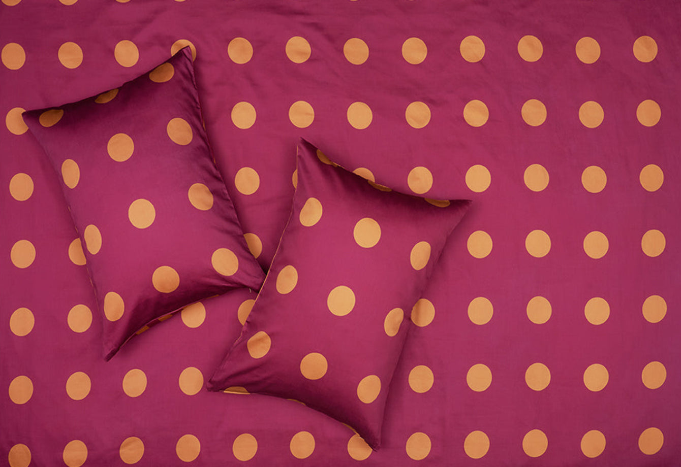Spot On celebrates visual rhythm. Rondelli plays with the geometry of dots and lines, weaving a pattern that feels both grounded and dynamic. The burnt orange tone channels vintage spirit while delivering a striking, contemporary aesthetic. Sleep in a space where mid-century inspiration meets minimalist clarity.