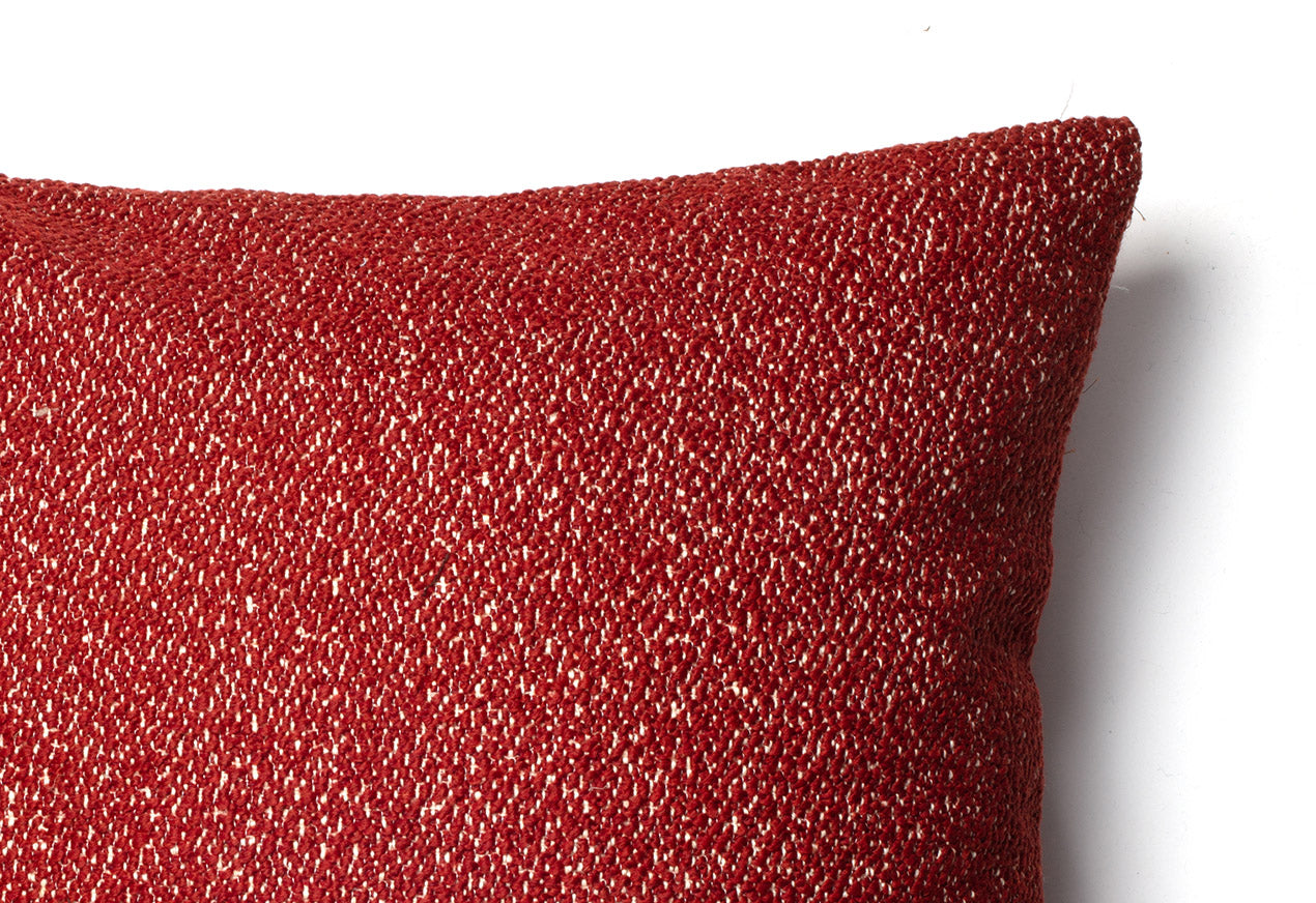 A richly textured cushion with a wool-like weave, offering a deep amber tone that enriches any interior with subtle volume and warmth.