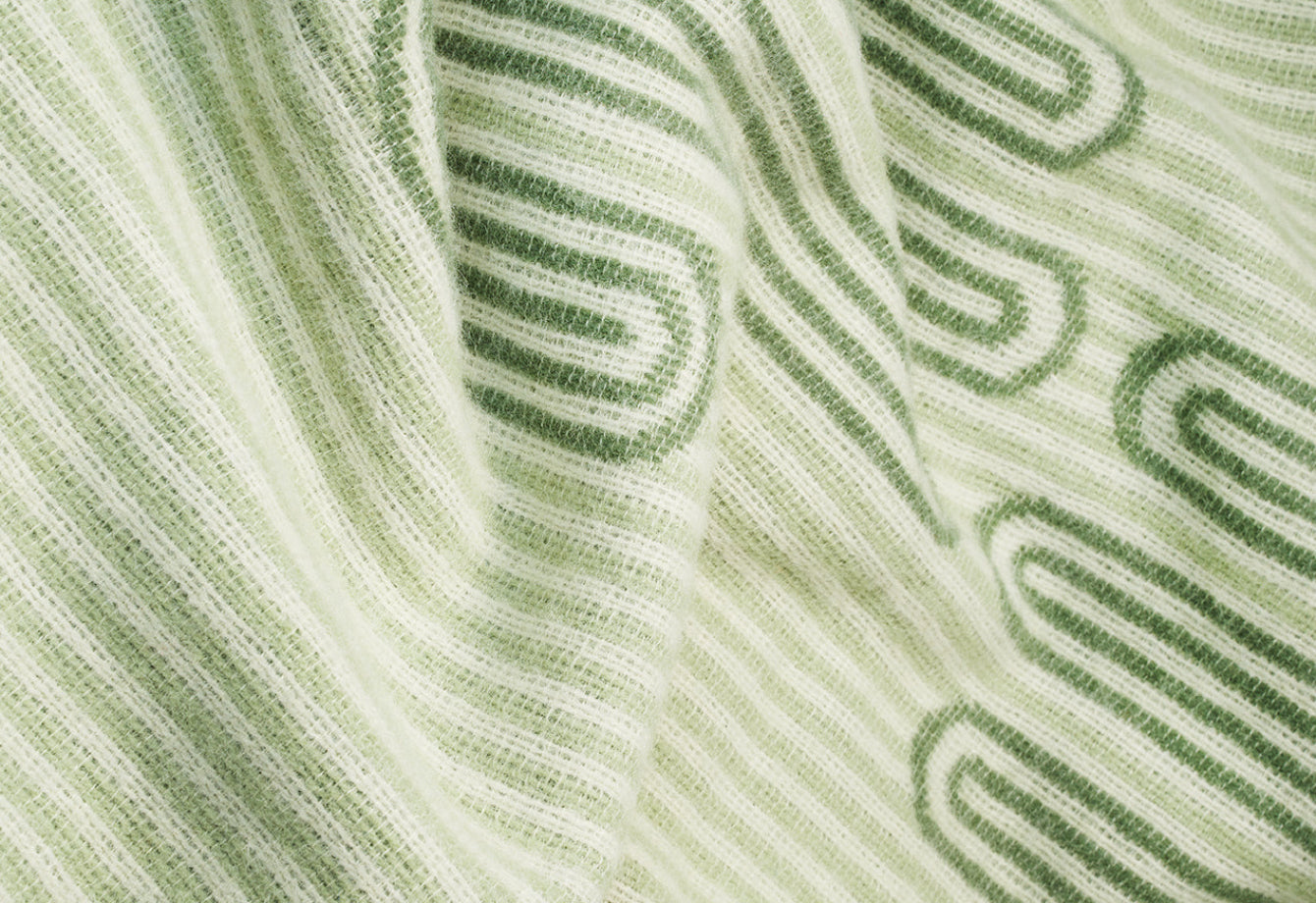 Pale pistachio lines glide across an ivory ground, bending into two mirrored, out-stretched hands that never quite touch. Drawn by Milan-based designer Paolo Giacomazzi, Convivio translates the gentle choreography of a communal toast into woven form. The blanket’s airy New Zealand wool keeps you comfortably warm while the tranquil pattern settles any room into quiet conversation.