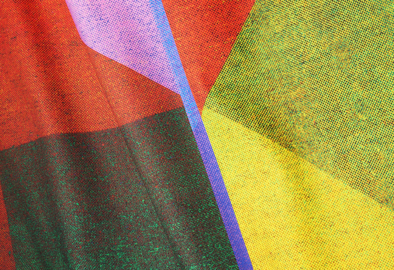 Risografia captures the essence of Risograph art through carefully layered geometric shapes and bold hues. Claudia Caviezel’s distinctive approach embraces subtle imperfections, smudges, and charming color variations, making each curtain an artistic statement of individuality and creativity.