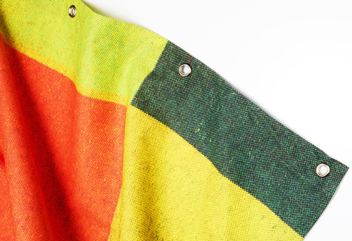 Bring bold colors and playful geometry to your bathroom with Claudia Caviezel's "Risografia" shower curtain. Expertly printed on luxurious Panama cotton, this waterproof curtain celebrates artistic textures inspired by Japanese Risograph printing.