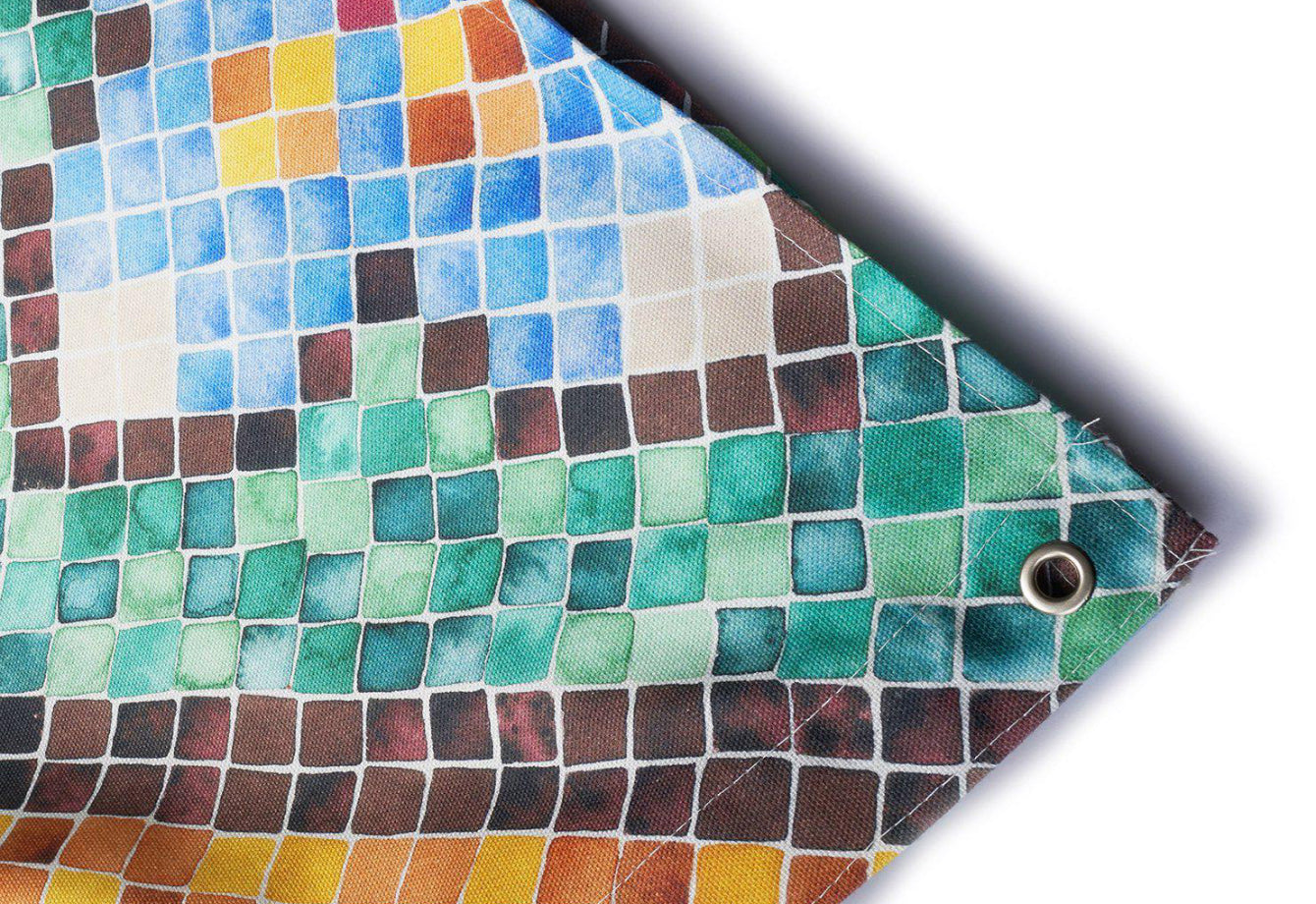 Inspired by the polychrome tile roofs of Swiss palaces and churches, the "Tilescapes" shower curtain brings a unique, historical touch to your bathroom. Printed on luxurious Panama cotton, it’s both waterproof and soft to the touch, combining functionality with artistic elegance.