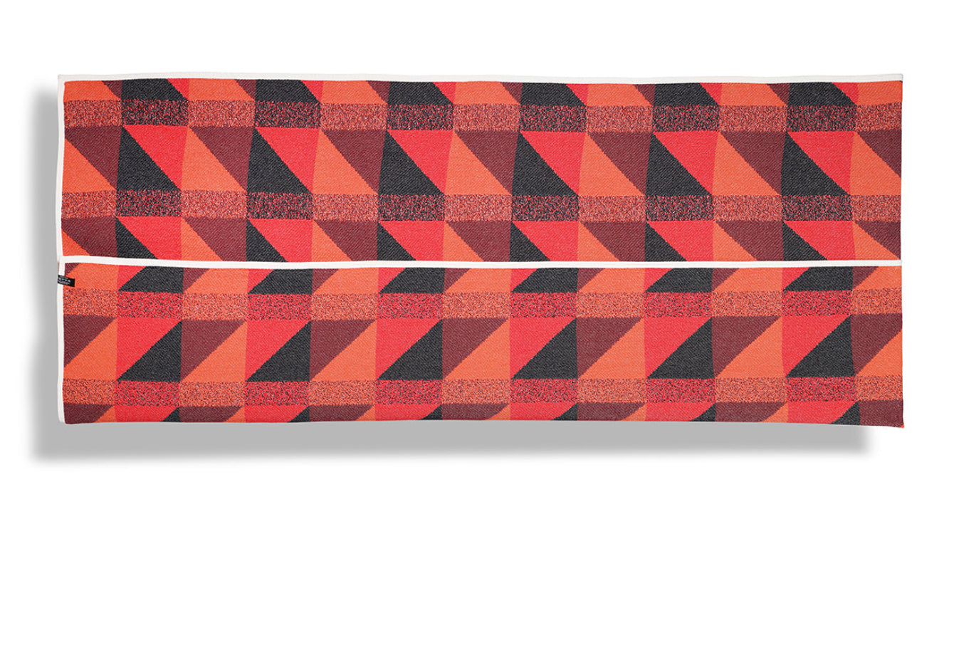 “Highlander” reimagines classic Scottish tartan as a dynamic grid of red and charcoal triangles. Jacquard-woven from 100% recycled cotton, this extra-long blanket (220 × 140 cm) drapes smoothly over a double bed, stretches across the sofa, or rolls up for outdoor adventures. Soft yet hard-wearing, it blends heritage pattern with contemporary colour, turning everyday lounging into a bold design statement.