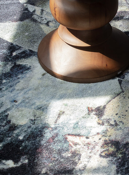 Explosion transforms raw energy into stillness, reframing chaos as quiet cosmic order. Inspired by ignited flash powder, the design mirrors the beauty of controlled detonation - where force becomes form. Within its balanced 230 × 230 cm composition, shimmering tones expand like galaxies, allowing one to quite literally step into the universe. It’s both bold and contemplative, an artwork that radiates calm through power.