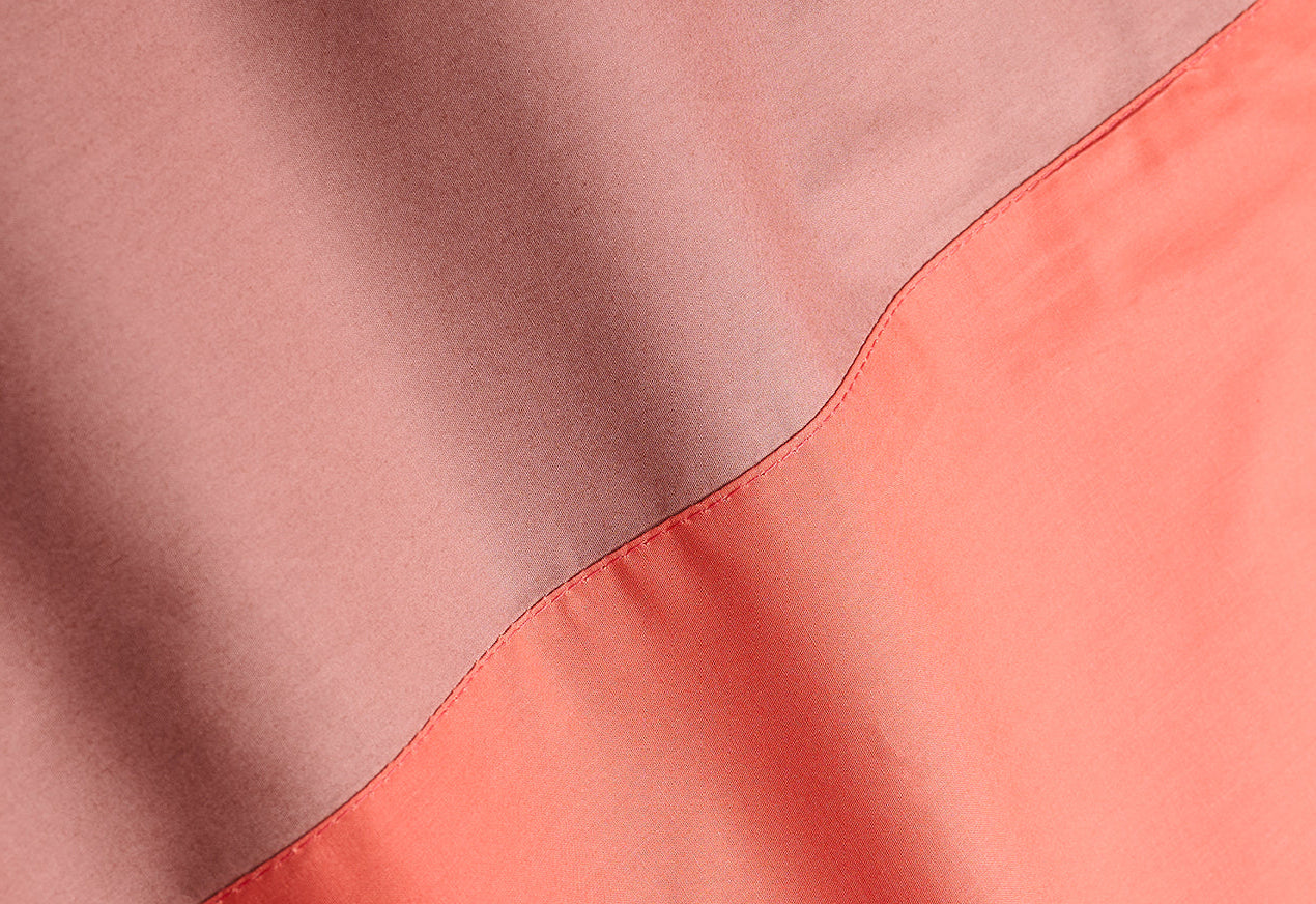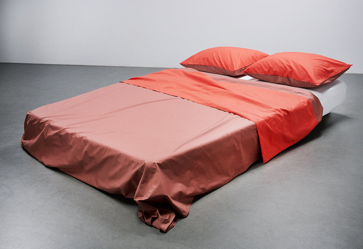 Red Earth and Lobster create a warm and expressive colour pairing inspired by natural pigments and sunlit landscapes. The deep earthy red introduces depth and grounded warmth, while the Lobster tone adds a lively accent that brings energy and visual character. Together they create a bold yet balanced palette that enhances the bed with personality. The double-layer cuff highlights this contrast, turning the sheet into a striking design element within the bedroom.