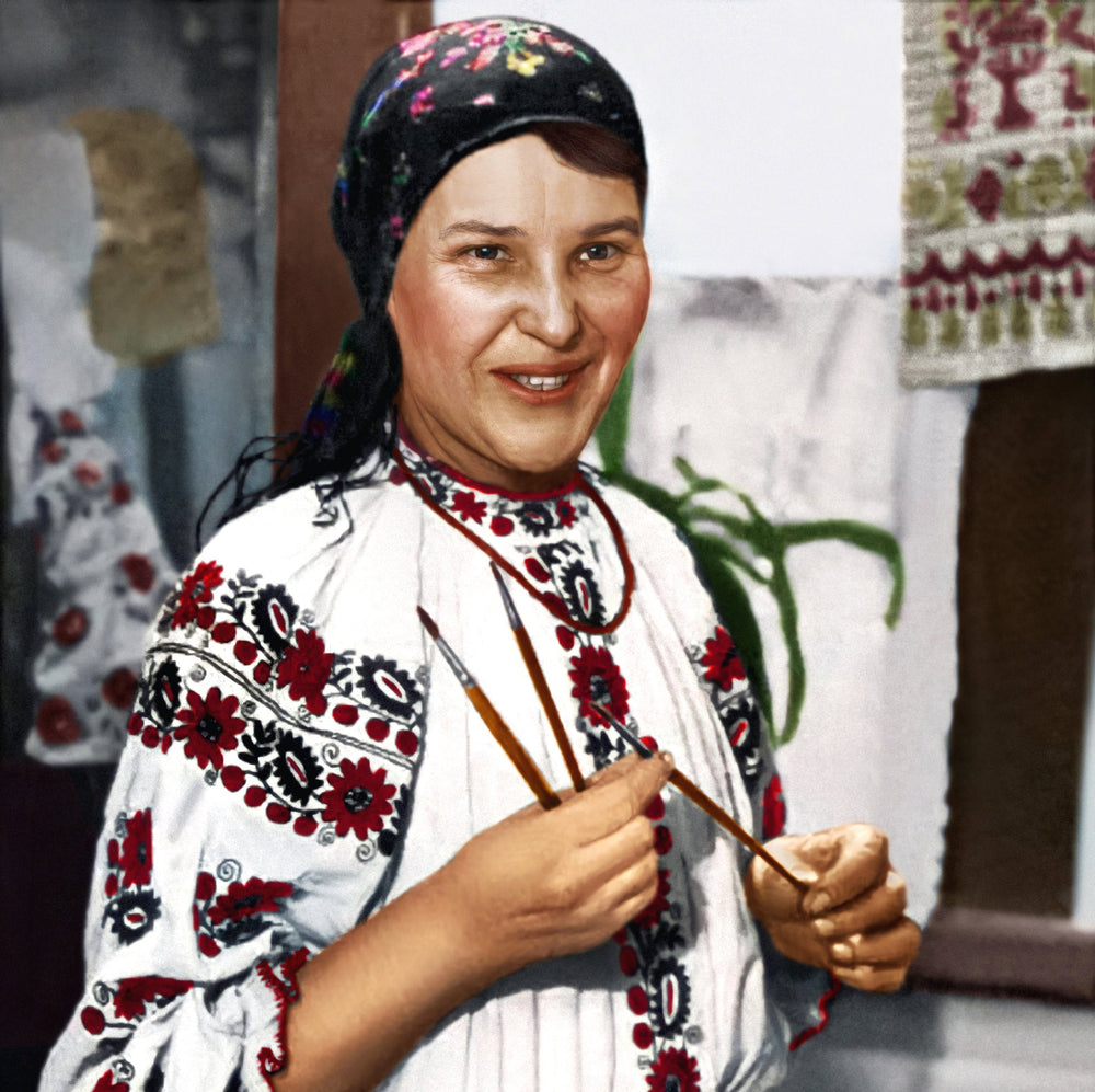 Born in 1908 in Bolotnja in the Kyiv governorate, Maria Prymachenko is one of the best-known and most popular folk artists in Ukraine. Her radiantly colorful, naive motifs adorn postage stamps all over Ukr...