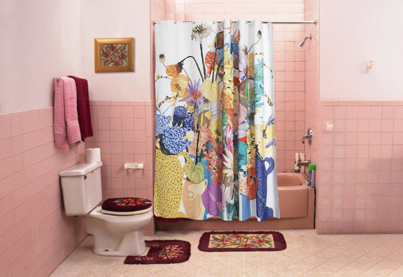 The "Blossom" shower curtain is a stunning representation of the power of nature through flowers. Designed by Sophie Probst, this vibrant artwork infuses your bathroom with a burst of life and romance. Printed on high-quality European woven Panama cotton, the design offers a perfect blend of artistry and functionality. The curtain is treated with Eco TEFLON, making it both waterproof and stainproof while maintaining the softness and touch of premium cotton. Each curtain is handmade in Italy with the finest stainless steel eyelets, adding a touch of luxury to your bathroom space.