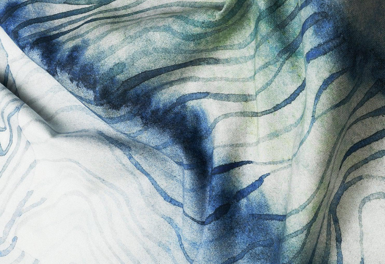 Inspired by the organic flow of natural structures, the "Flowing" artist cotton shower curtain features original artwork by Remo Mazzoni. The design draws from microscopic images of bacteria, the universe, and the Triassic rock layers of Monte San Giorgio in Switzerland. Crafted from premium Panama cotton, this curtain is waterproof, stainproof, and luxuriously soft.
