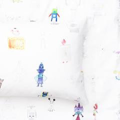 Since our launch in 2013 working with original artists for home textiles, we decided to launch a kid’s collection of home textiles that is a change from the norm. Working with incredibly talented, silly, funny, and cheerful artists and kid artists from around the globe to bring this new collection to life, the goal was to mix original artwork and design that was different from the high street, something that the big kids in us like whilst incorporating the humor of the child’s mind.
