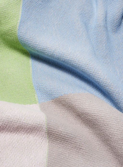 Design duo Michele Rondelli & Sophie Probst capture a shoreline daydream: tidepool teal, deep-water navy, sun-bleached khaki and cloud-soft blue form a balanced patchwork that evokes boats bobbing on a calm bay. The reversible weave flips the palette for fresh visual play, letting little ones follow new colour stories each time the blanket is folded.