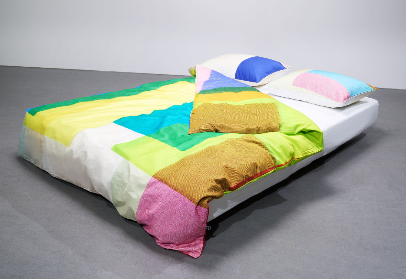 Our artist bedding is made from premium European cotton sateen, woven and printed in Italy to the highest standards. Each design is created in collaboration with international artists and transferred onto fabric with lasting color and clarity. We print only on natural cotton, never synthetics. Every duvet cover and pillowcase is hand-cut, sewn, and finished in our Italian atelier. Art meets textile — elevated through precision, purpose, and craft.