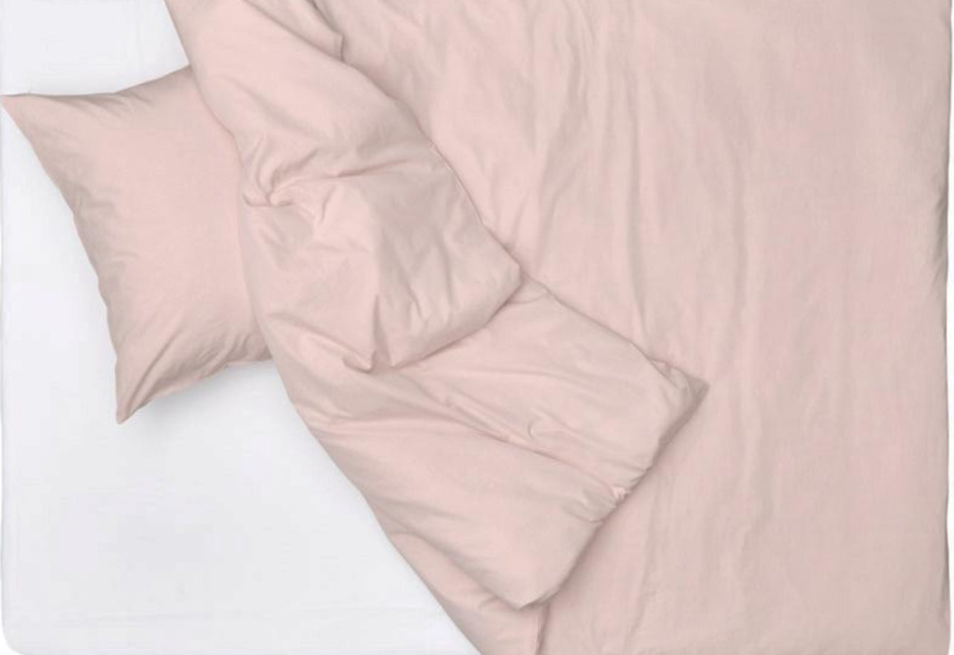 This Vintage Luxe bedding in rose pink blends classic softness with Italian craftsmanship. The gentle pink hue; achieved through yarn-dyeing and washed in traditional Italian hot baths; offers a warm; calming charm. Ideal for elegant; serene bedroom spaces.