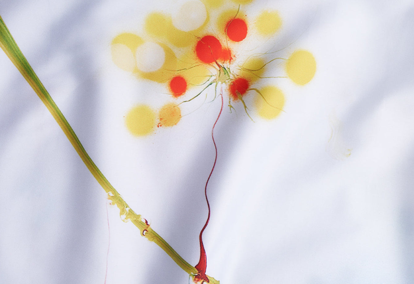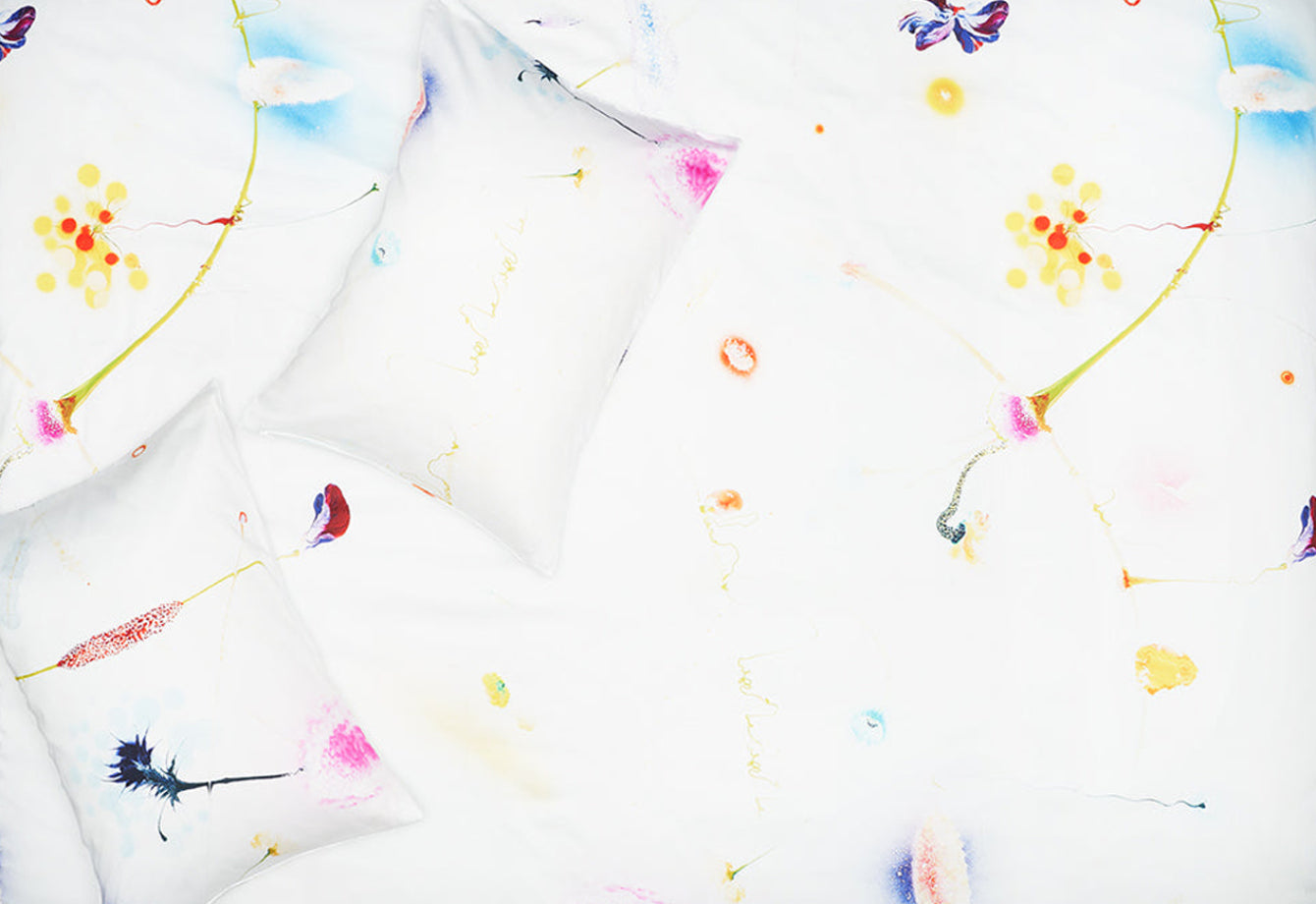 Our artist bedding is made from premium European cotton sateen, woven and printed in Italy to the highest standards. Each design is created in collaboration with international artists and transferred onto fabric with lasting color and clarity. We print only on natural cotton, never synthetics. Every duvet cover and pillowcase is hand-cut, sewn, and finished in our Italian atelier. Art meets textile — elevated through precision, purpose, and craft.