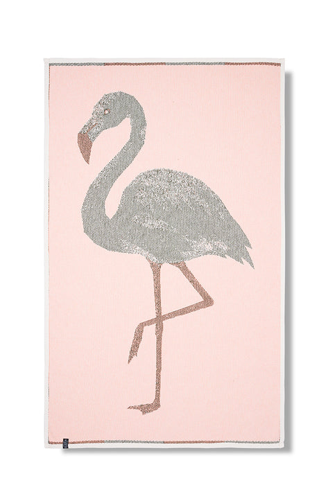 “Flamingo” by Michele Rondelli captures the poised elegance and graphic silhouette of this iconic bird. Clean lines and confident colour create a composition that feels refined yet vibrant. A cotton beach towel and mini blanket that brings architectural balance and summer energy together.