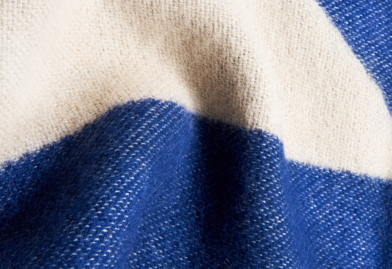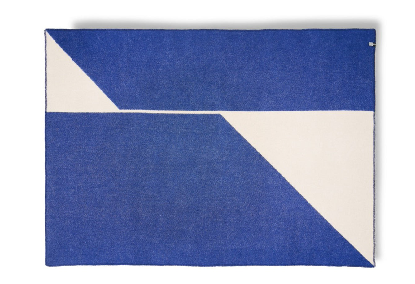 “Cut-Up Blue” by Ulla Pederson transforms the language of colour and form into a bold wool blanket. A statement piece balancing geometry with softness.