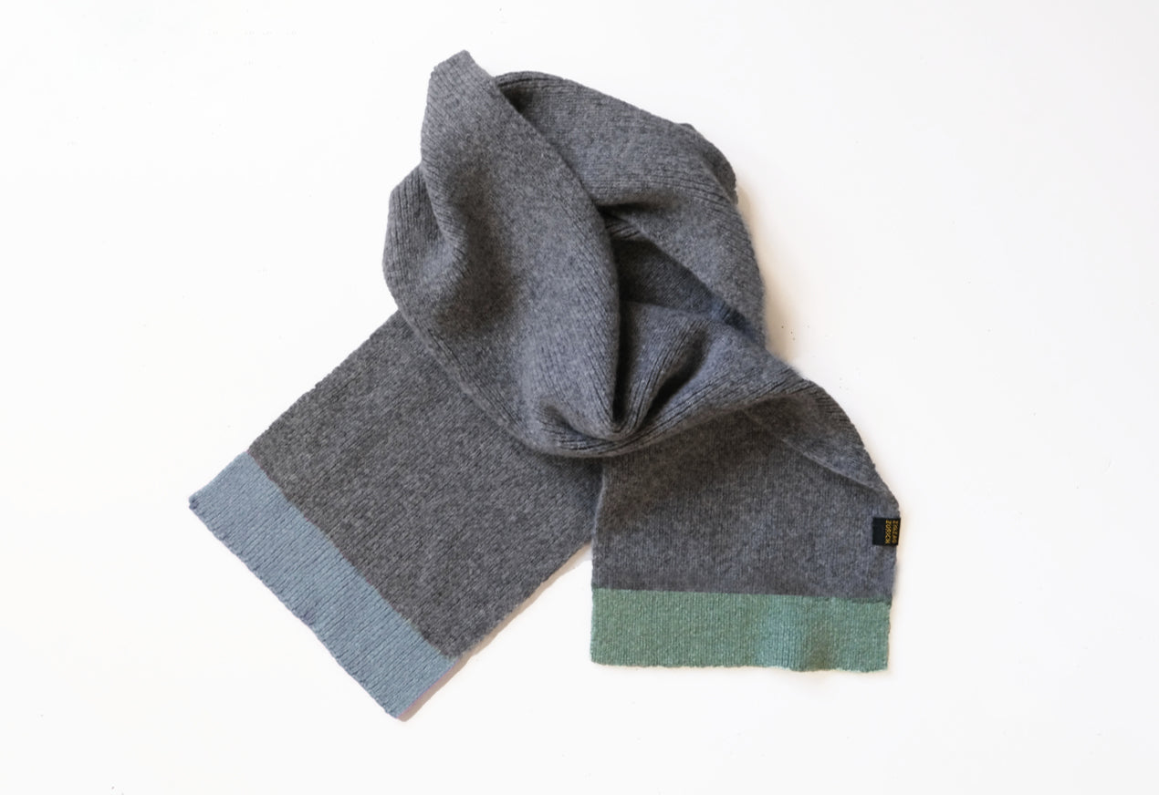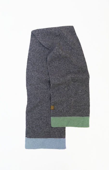 Trio Colore – Charcoal Frost associe un fond anthracite profond à des accents menthe fraîche et bleu glacier. Tricoté en alpaga bébé et en mérinos fin, il offre une élégance hivernale tout en douceur, rehaussée d'une touche de modernité.