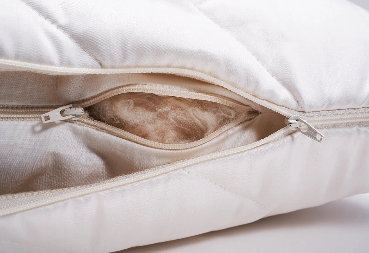 Garnie d'un mélange de fibres de TENCEL™ Lyocell, de kapok et de maïs de première qualité, la taie d'oreiller Eco Rest offre une gestion exceptionnelle de l'humidité et une thermorégulation optimale, vous gardant au frais en été et au chaud en hiver. Le TENCEL™ Lyocell, produit par Lenzing en Autriche selon un procédé en circuit fermé, absorbe 50 % d'humidité en plus que le coton. Biodégradable et respirant, il est idéal pour les personnes allergiques. Le kapok, l'une des fibres naturelles les plus légères au monde, est hypoallergénique, résistant à l'eau et issu d'arbres à longue durée de vie ne nécessitant aucune irrigation. L'enveloppe extérieure est tissée à partir de fils 100 % TENCEL™ Lyocell et ornée de notre motif de couture signature ZZZ. Chaque oreiller est fini à la main en Europe, offrant un soutien mi-ferme et un confort durable grâce à ses fibres végétales.