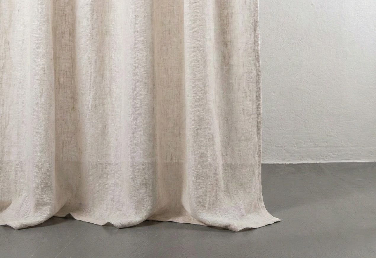 Nos rideaux en lin sont tissés à partir de fils certifiés Europan Linen, 100 % européens, du lin au tissu fini. On utilise uniquement des fils de lin belges et français, teints en Italie pour obtenir des couleurs durables et d'une profondeur exceptionnelle. Chaque rideau est fabriqué sur mesure, coupé et cousu à la main dans notre atelier italien. Le résultat est un tissu naturellement texturé et respirant, avec une structure subtile et une chaleur qui filtre la lumière. Chaque panneau est accompagné d'un ruban universel, prêt à être suspendu. Pas de stock, pas de raccourci - juste de l'artisanat pur, du début à la fin.