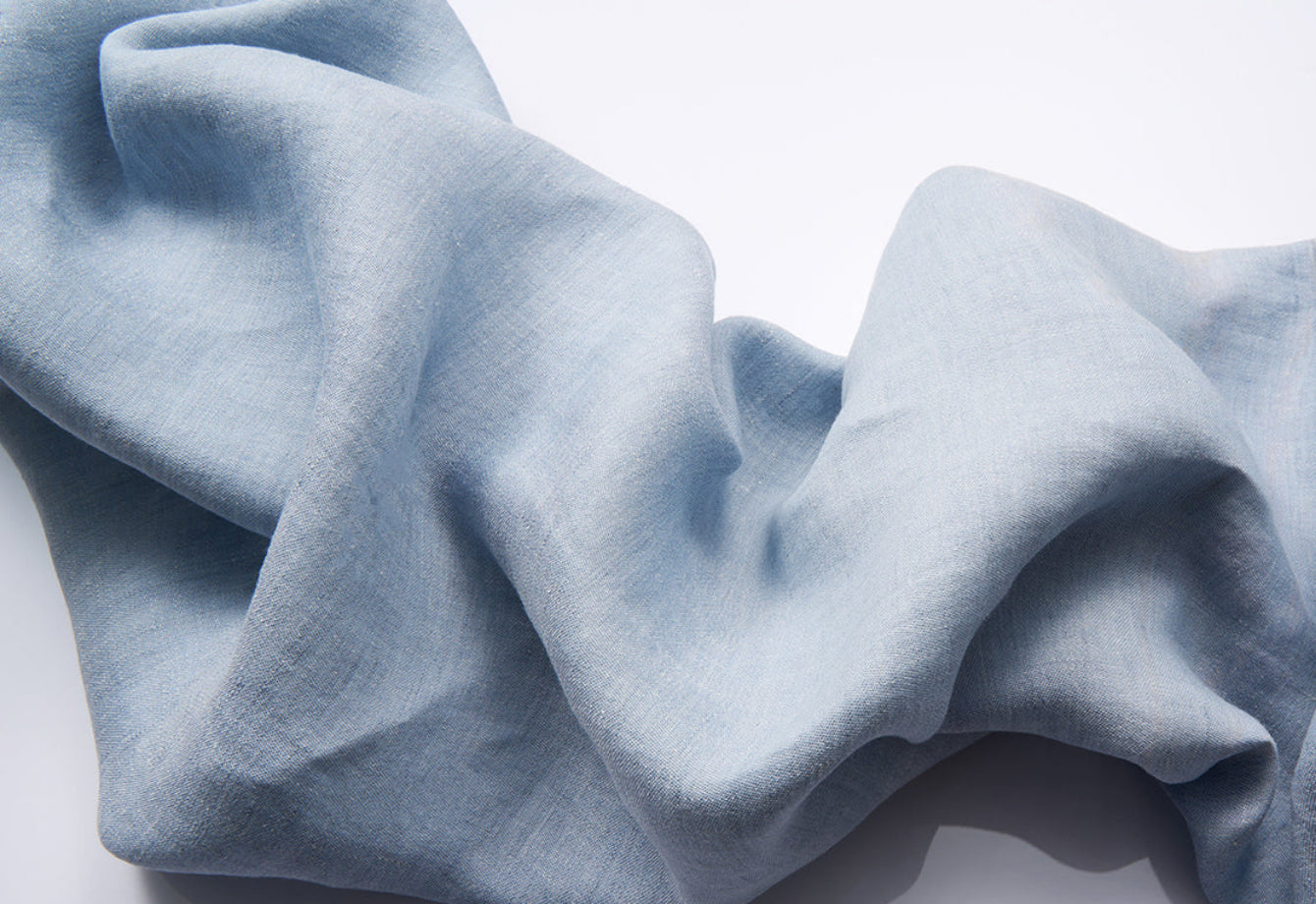 Confectionné en 100 % lin de qualité supérieure issu du lin belge filé en Italie, le tissu est fil teint avant tissage pour intensifier la couleur et la durabilité. Fini par un stonewash doux, ce tissu de poids moyen (env. 220 g/m²) offre une richesse tactile raffinée. Certifié OEKO-TEX® STANDARD 100 et fabriqué sur commande en Italie.
