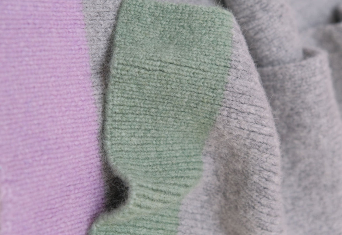 REJOIGNEZ NOS ARTISTES TALENTUEUXL'écharpe en laine d'alpaga "Trio Colore" - Grey associe un corps graphite à des pointes lilas et vert forêt pour une finition à la fois calme et distinctive. Tricotée en Italie en côtes tubulaires compactes, elle mélange 56 % de baby alpaga et 10 % de mérinos fin avec 34 % de polyamide recyclé pour une chaleur moelleuse, de la douceur et de l'élasticité. Chaque pièce est finie à la main après un tricotage de deux heures. Taille 160 × 25 cm ; environ 280 g. Fils traçables.
