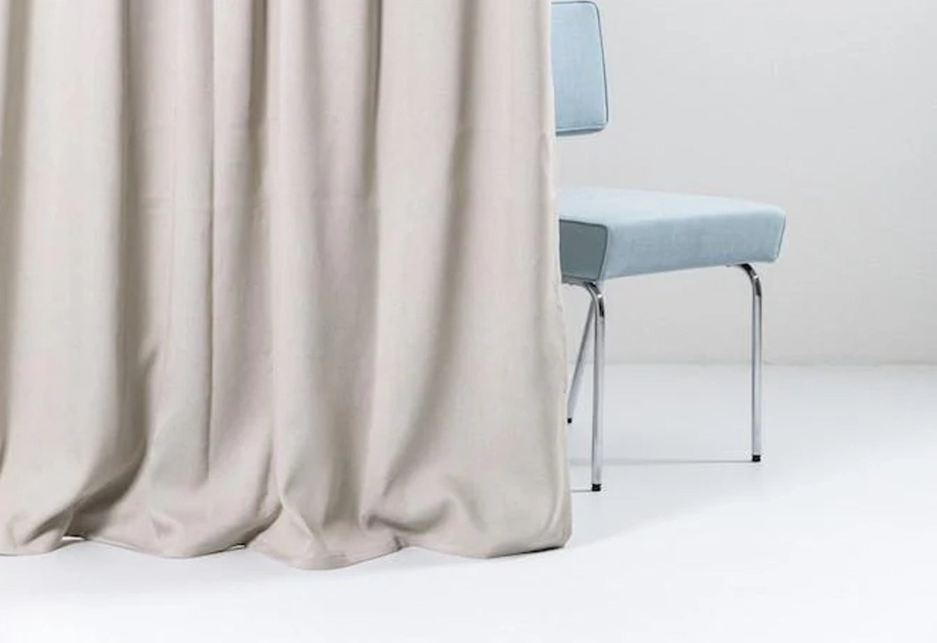 Rideaux occultants de luxe avec un tissage satiné mat raffiné. Conçus pour bloquer 99,5 % de la lumière, ils garantissent l'intimité et un contrôle optimal de la lumière dans tous les espaces.