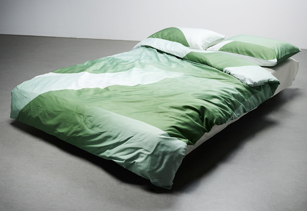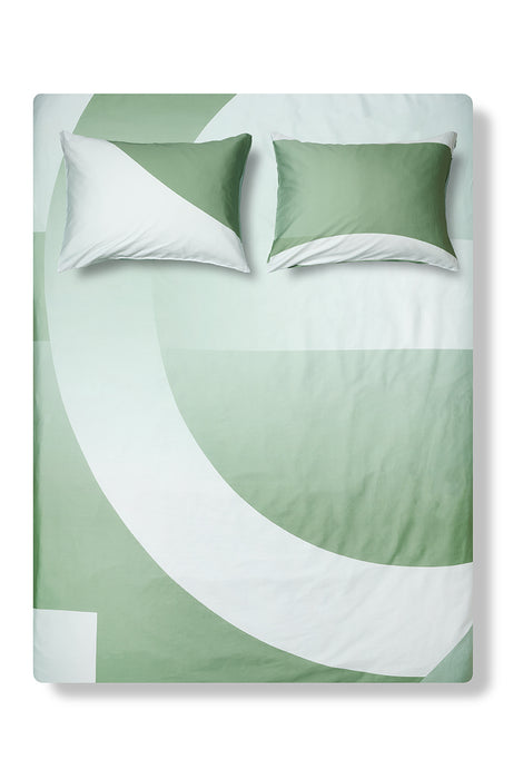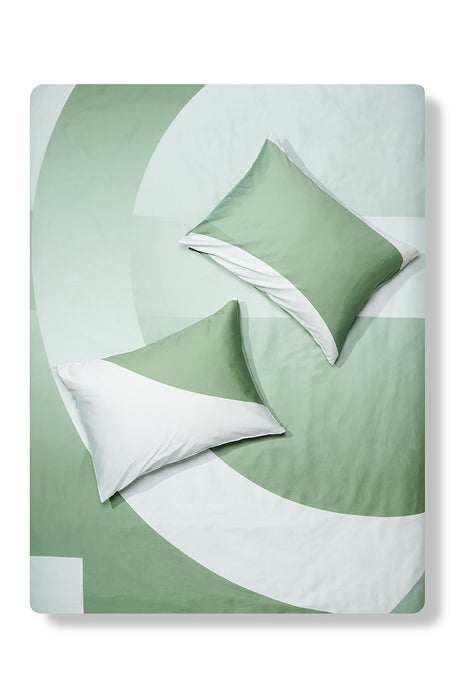JOIN OUR TALENTED ARTISTSThe “Bedtime Tangents Daily Green” bedding by Dario Cortese combines crisp geometry with soft gradients of green and white, evoking lightness, vitality, and balance.