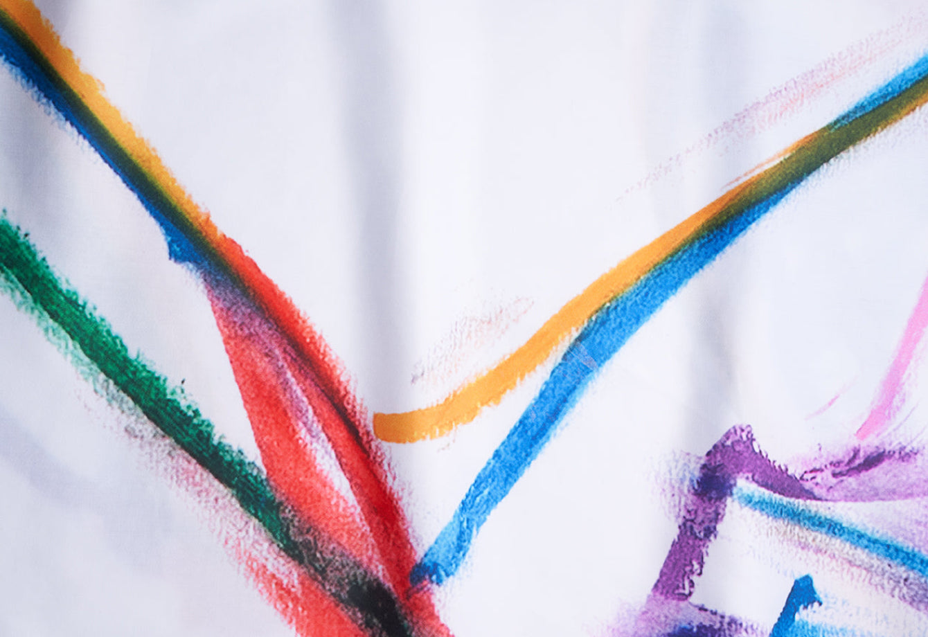 Our artist bedding is made from premium European cotton sateen, woven and printed in Italy to the highest standards. Each design is created in collaboration with international artists and transferred onto fabric with lasting color and clarity. We print only on natural cotton, never synthetics. Every duvet cover and pillowcase is hand-cut, sewn, and finished in our Italian atelier. Art meets textile — elevated through precision, purpose, and craft.