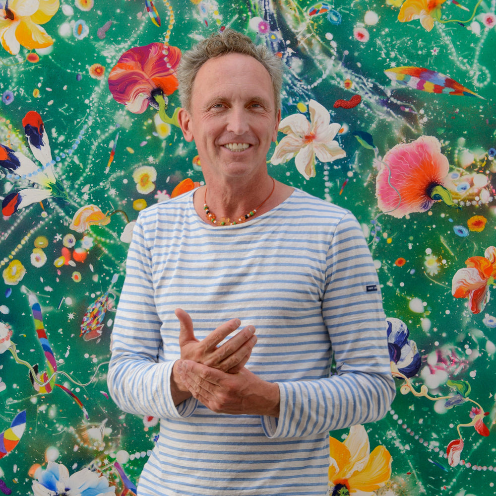Thierry Feuz brings an organic dreamscape to life with Raingarden Equinox. Inspired by the fragility and grace of suspended gardens, this artwork delicately blends curves and vibrant hues into a serene visual experience. Every element is precisely placed to create a peaceful harmony—inviting you to rest in a timeless garden of beauty, balance, and pure artistic expression.