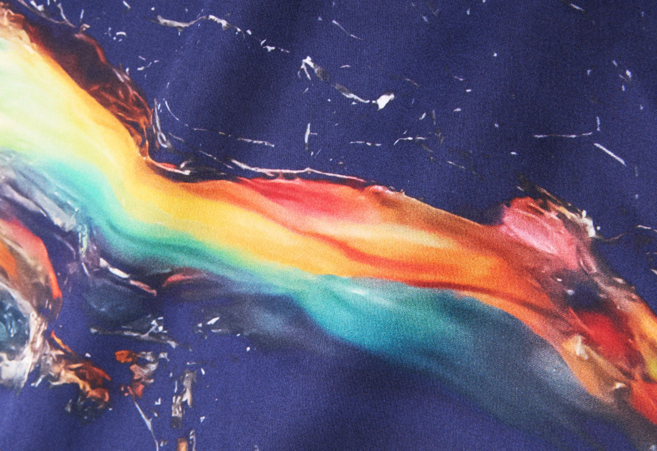 Inspired by the vastness of the cosmos, Galaxy channels the beauty and chaos of outer space. Each vibrant streak mirrors stars, nebulae, and cosmic dust—capturing the immense energy of the universe in a powerful visual dance. Dario Cortese’s design invites you to drift into the stars every night.