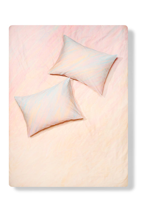 Our artist bedding is made from premium European cotton sateen, woven and printed in Italy to the highest standards. Each design is created in collaboration with international artists and transferred onto fabric with lasting color and clarity. We print only on natural cotton, never synthetics. Every duvet cover and pillowcase is hand-cut, sewn, and finished in our Italian atelier. Art meets textile — elevated through precision, purpose, and craft.