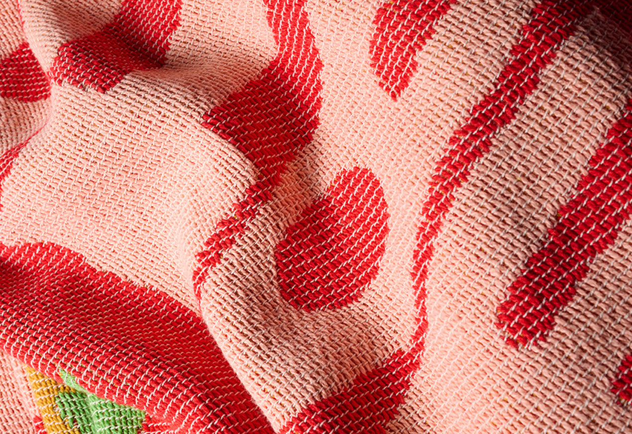 “Tomato” by Jody Barton brings playful repetition and vibrant colour into everyday living. Inspired by the spirit of pop culture, the design feels joyful, graphic and unapologetically bold. A cotton blanket that adds humour, warmth and visual punch to any interior.