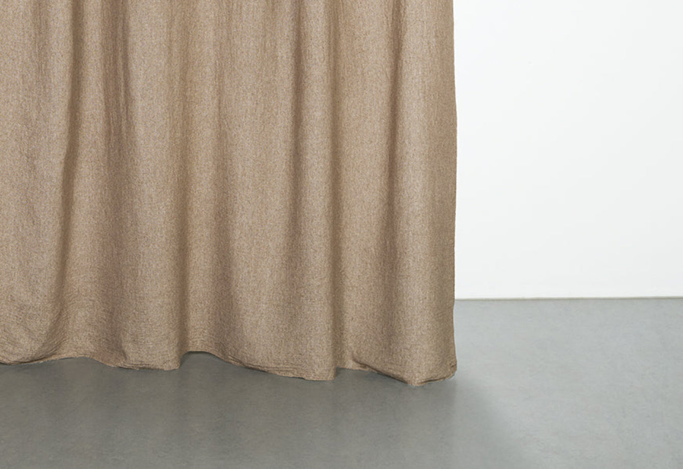 Enhance your interior with Tobacco Color Recycled Wool Curtains, expertly crafted to offer subtle opacity, balanced privacy, and gently diffused sunlight. The luxurious blend of recycled wool and linen naturally regulates room humidity and acoustics, perfect for modern living.